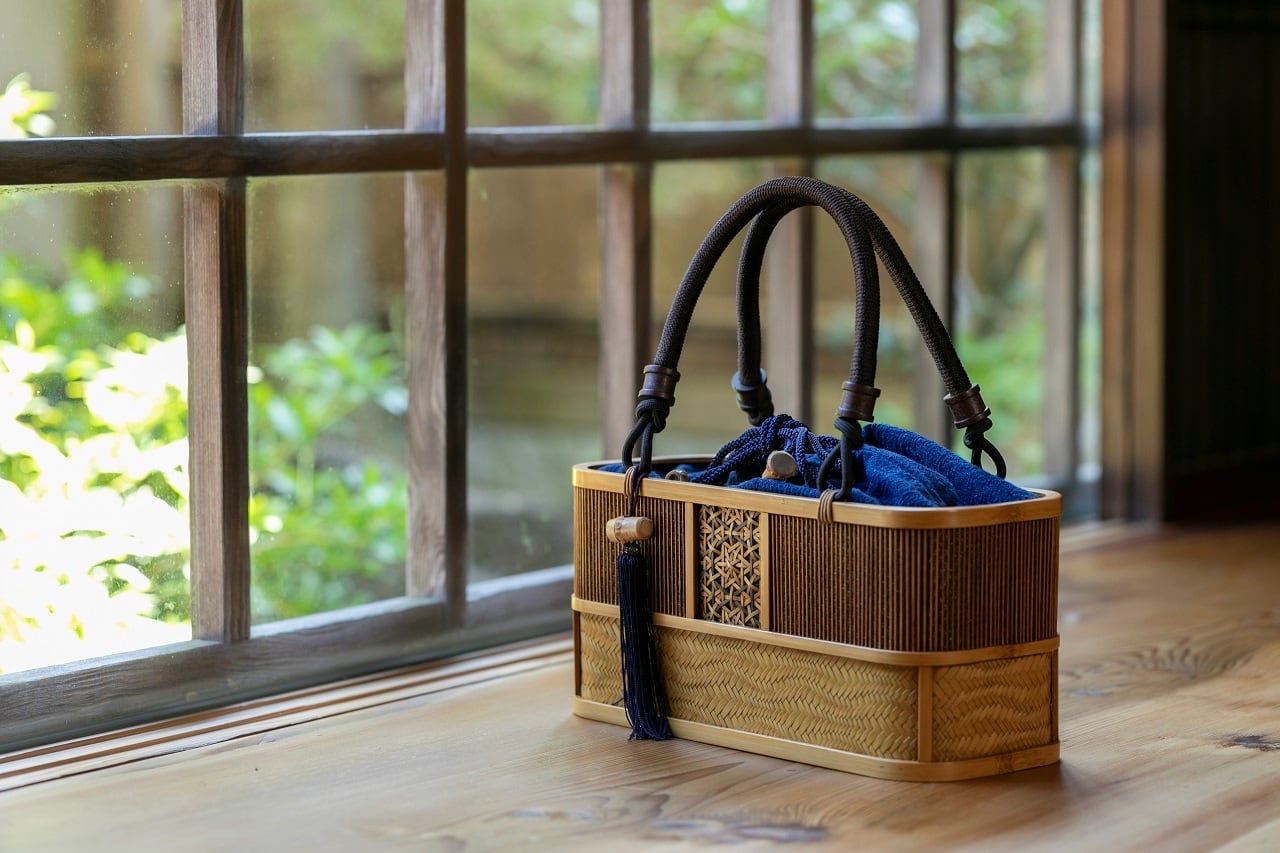 職人の技が光る角曲げの竹バッグです。麻の葉、波網代の模様も美しく、和装、洋装どちらにも似合います。仕上げには摺り漆を施し、雨などにも強く、耐久性も優れています。 ◆商品名 長角波網代 ◆サイズ 幅30.2㎝×奥行12㎝×高さ14㎝ ※手作りのため、サイズに多少の差がありますことご了承ください。 ※水には強い製品ですが、風通しのよい場所で保管してください。 ※乾拭きでお手入れしてください。